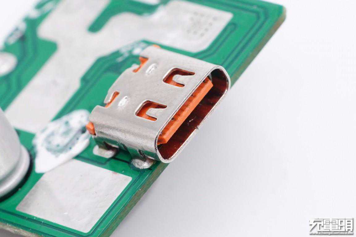 输出顶面配有USB-C接口,橘红色胶芯不露铜。