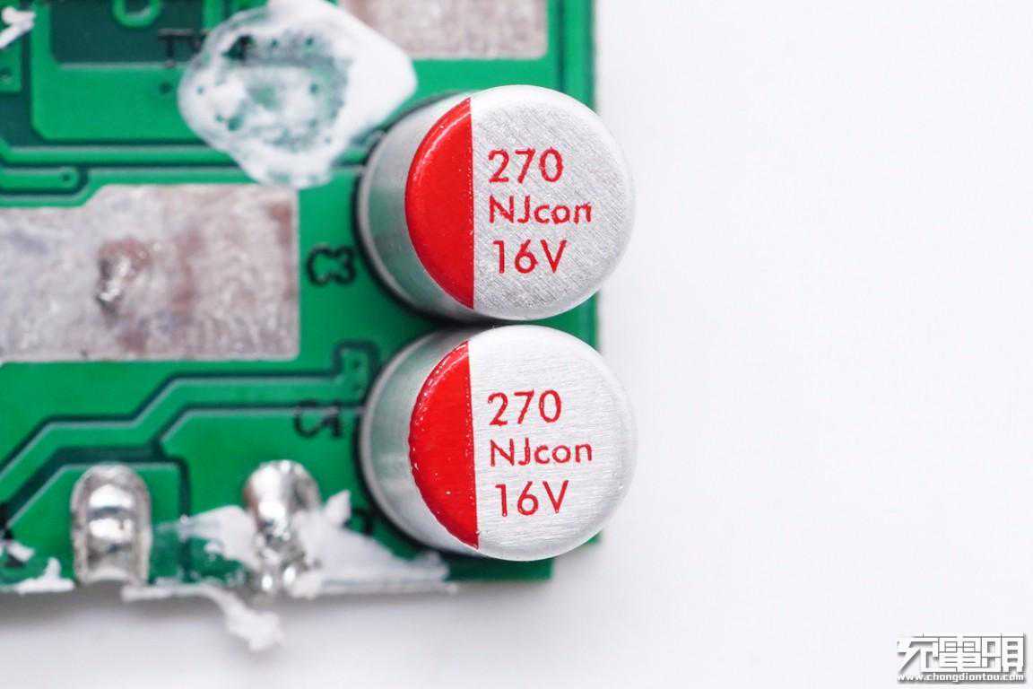 两颗输出滤波固态电容规格都是16V270μF,NJcon品牌。