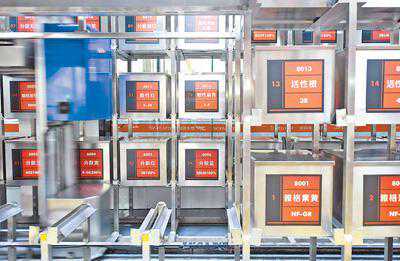3月14日,机器人将纤维产品存入立体仓库。