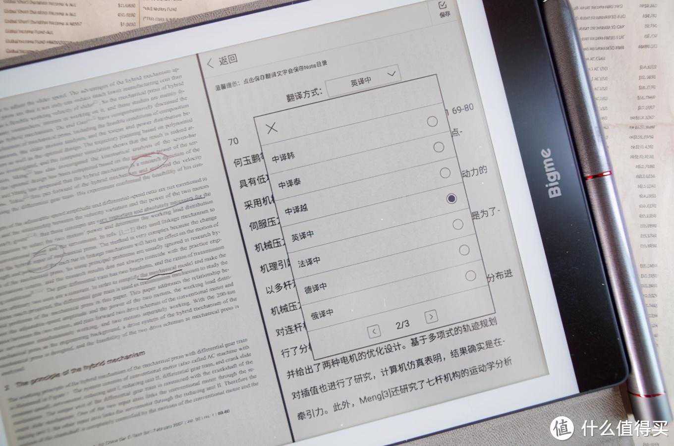 内置欧路词典,在阅读界面直接调用,再多再复杂的专业单词都不怕,而且还支持直接在文字版的PDF上面直接取词!不是一般的强大!成为学习工作上的必备利器。除了词典,Bigme还有分栏模式,可以实现双开文档,双开笔记和翻译模式。