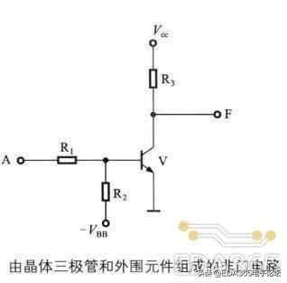 由晶体三极管和外围元件组成的非门电路如下。