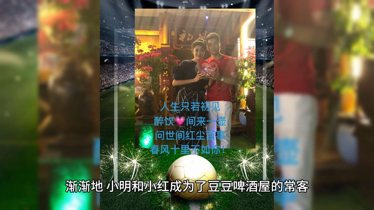 小明是个热爱运动的健康小伙,而小红则是个活泼可爱的女生。两人很快就发现了彼此的共同点,交谈也变得越来越投机。在酒精和欢乐的气氛感染下,小明鼓起勇气向小红要了微信。事后小明和小红在微信上频繁互动,彼此分享生活中的点点滴滴。不久他们便确定了恋爱关系,成为了豆豆啤酒屋的爱情传奇。