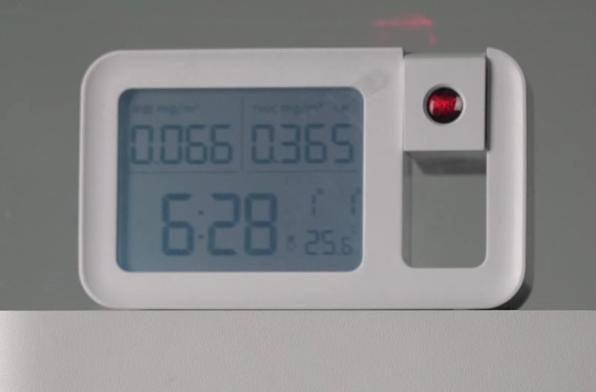 再多的理论不如实践见真知,也是等到烟雾充满玻璃罩再开启鱼仔机,采用高风阻低风量缓和净化方式的鱼仔机在速度上没有米家的那么快速,但之见在同一时长里b-MOLA鱼仔机处理甲quan更加彻底,检测器上显示甲quan浓度仅为0.008mg/m³,这净化效果在是三台里面最好的一台。