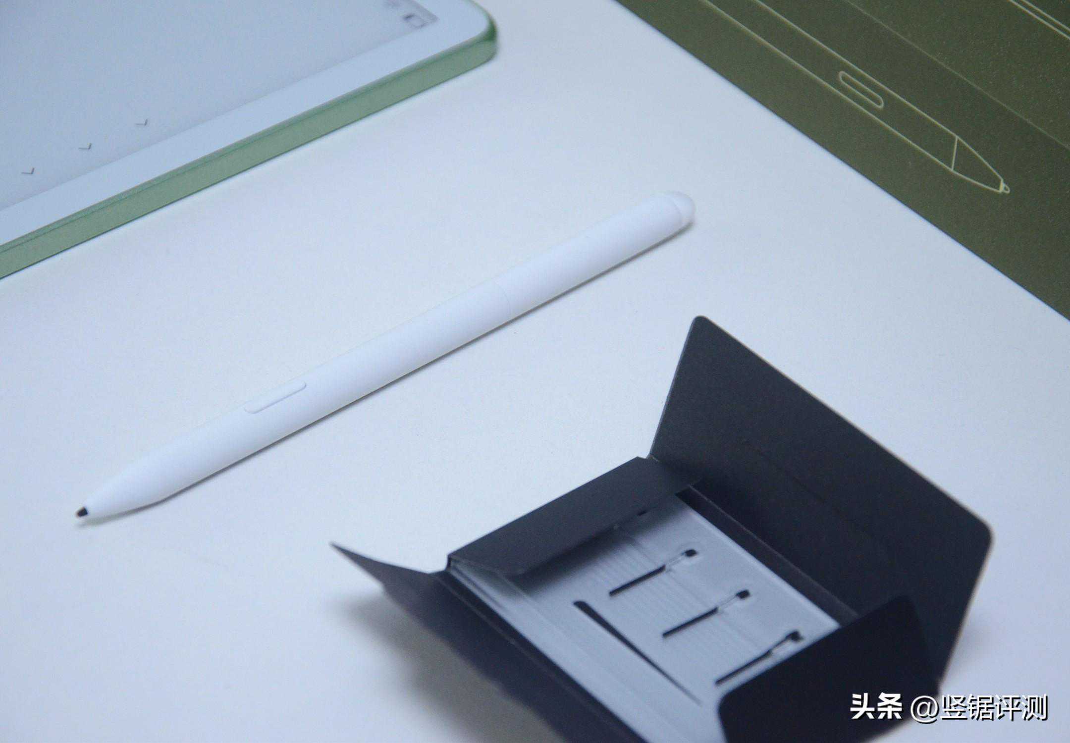 手写功能也是墨案W8的主打亮点之一,墨案W8出厂时会附送一支无需充电也可以使用的Premium电磁笔以及六枚毛毡笔尖头(有一支装在了电磁笔上)。