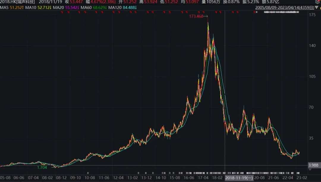 然而,在巅峰的2017年过后,瑞声科技就开启了持续的回调。