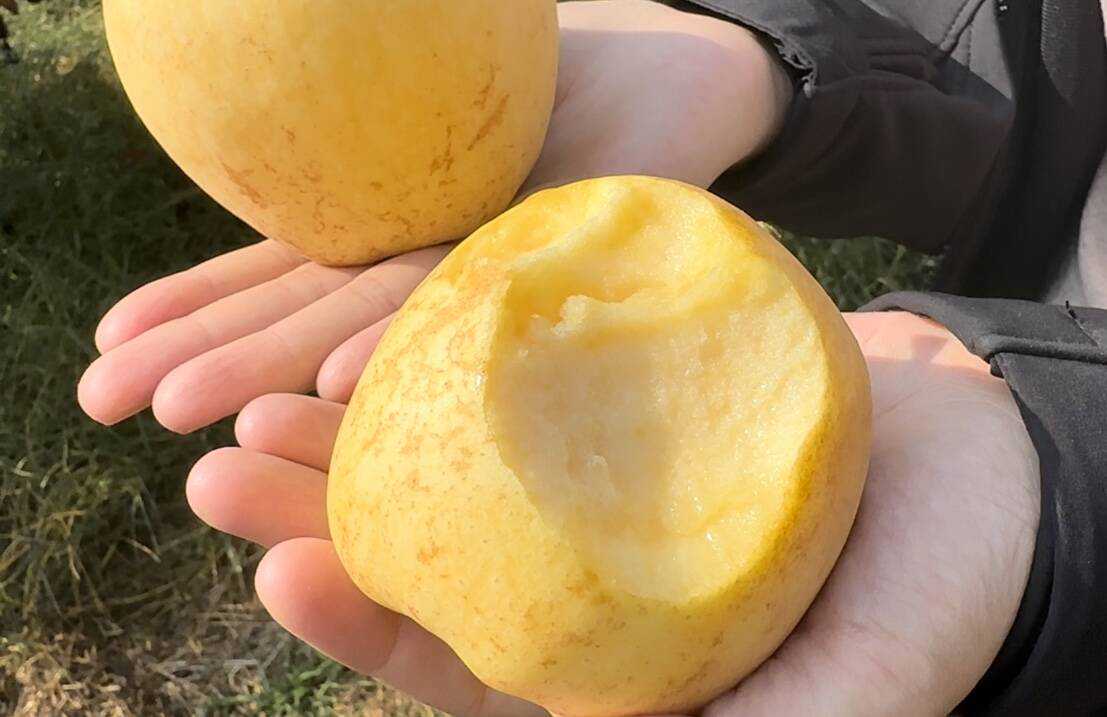 齐鲁网·闪电新闻11月20近年来,招远市夏甸镇积极推进老龄果园改造,扩建了臧家维纳斯黄金苹果示范园和曹孟4000亩新西兰爱妃苹果、日本土岐苹果等高端果品示范园。“这种金黄的苹果叫维纳斯,是我家种的新品种,特别好卖。今年这10亩果园差不多能卖15万元。”果农臧守尧说。