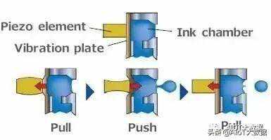 还有一种类型是通过压电薄膜震动来挤压墨水出来: