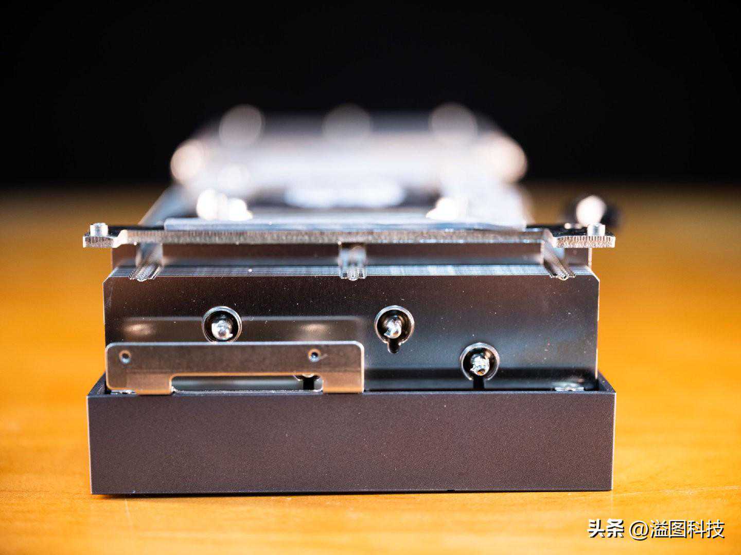 显存的供电和部分电容电感采用一体式中框散热,其余器件与散热器本体连接散热。