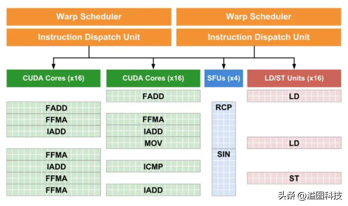 这个设计其实很类似于CPU上面的执行端口,通过拓宽后端执行架构来获得更高的IPC提升性能,同时避免重复放置单元造成晶体管浪费。这个视角来看Ampere/AdaLovelace类似于一个5执行端口的CPU,只不过其中一个发射端口可以发射FP和INT两种类型的指令。