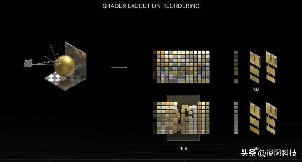 还有个一笔带过的新特性就是乱序执行,GPU的架构越来越像CPU看齐了。不过我本来以为乱序执行能力是SM里带的(自己PPT上写的嘛),还在想这到底要消耗多少额外的寄存器(x86CPU为了乱序执行有相当多的资源消耗在ROB之类的寄存器上面)。结果仔细一看是RTCores支持SER(着色器执行重排),而且增加的专用寄存器数量并不多,主要使用AdaLovelace新增的缓存——这不得不说也是个很讨巧的设计。