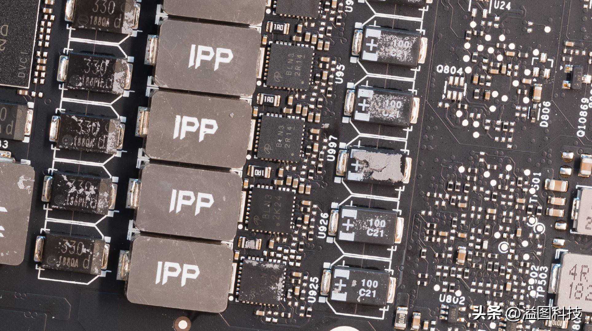供电部分采用18路核心,4路显存,电感为贴片式,电容则混用贴片式和普通固态电容。