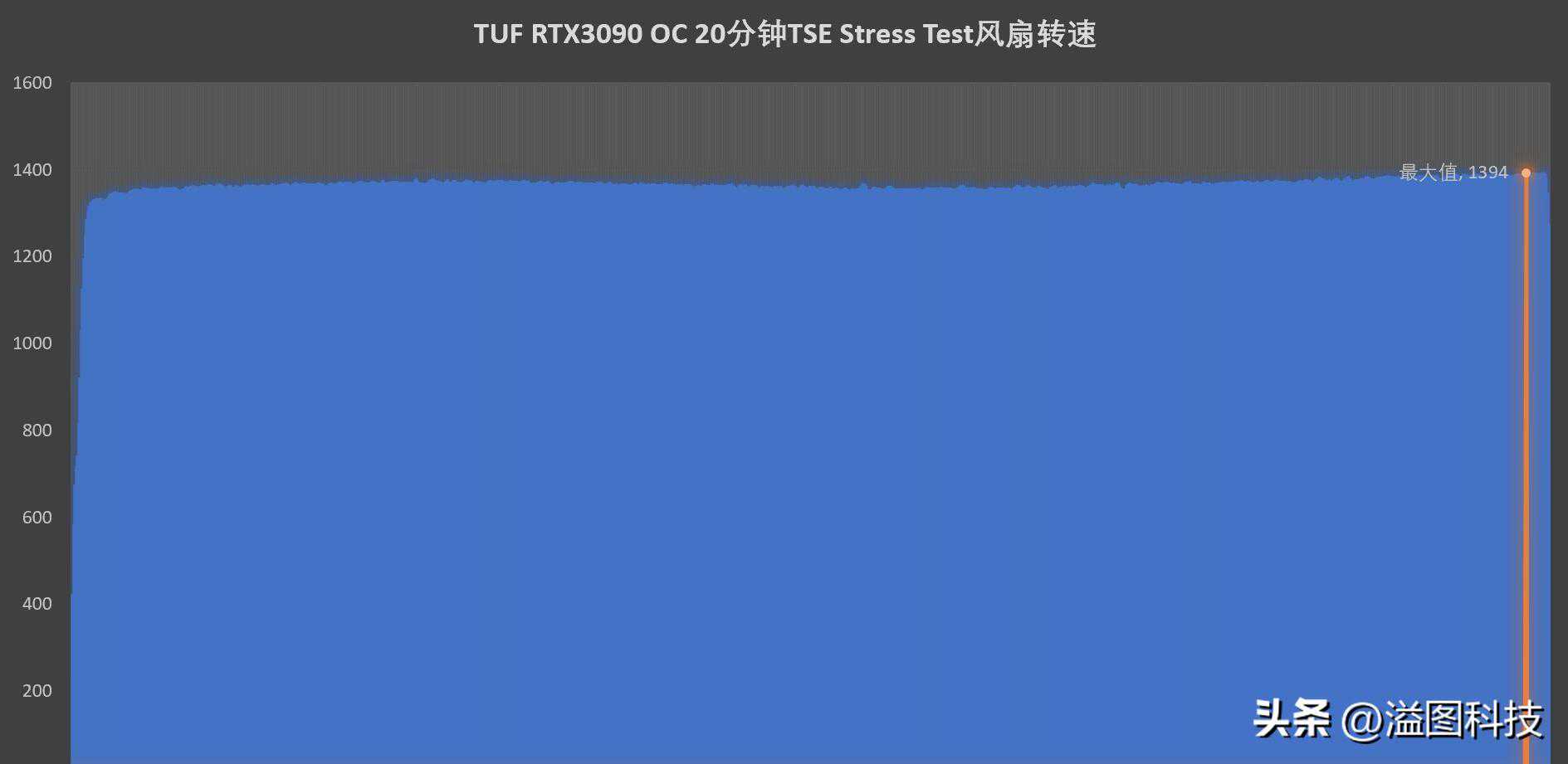 测试过程中最高功耗为400.4W,最高温度63.4℃,最高风扇转速为1394RPM,即使是OC状态下这张卡也非常安静,仅用1300RPM的转速就实现了不错的散热效果,工作噪声细不可闻。