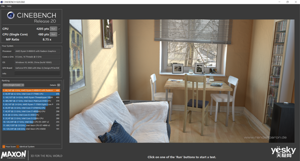 通过CPU-Z测试,AMD锐龙94900HS单核成绩为523.8,多核成绩为5482.8。在CINEBENCHR15测试中,单核成绩为189cb,多核成绩为1870cb。CINEBENCHR20测试中,单核成绩为480pts,多核成绩为4205pts。