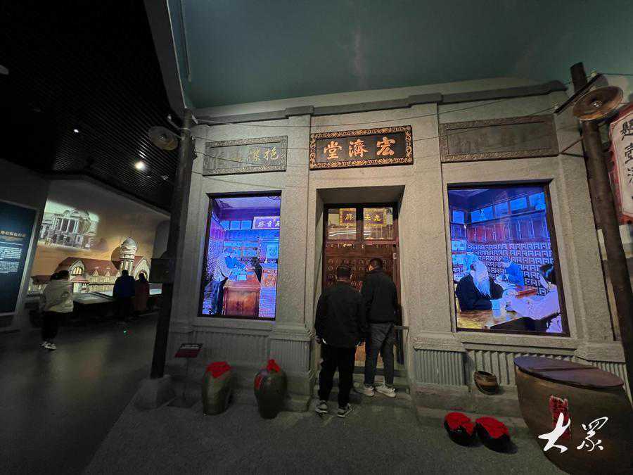 在“海岱日新展”中,沉浸式影院是一大亮点。这种创新的展陈方式,通过大曲面屏幕和实体场景的巧妙交互,打造出一个个身临其境的沉浸式景观,让观众不仅仅是在观看历史,更是在体验历史、参与历史。