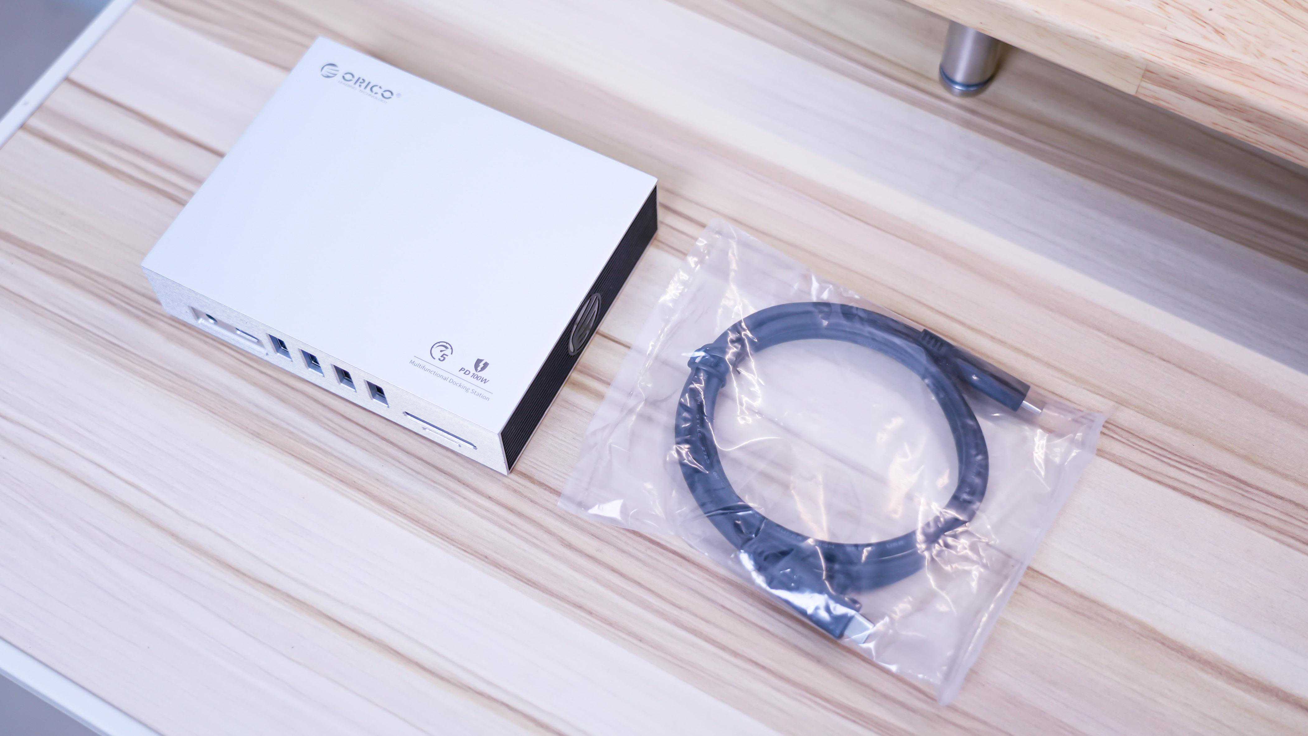 它的配件有一个全协议的Type-CtoType-C线材,全协议是指既支持HDMI,又支持DP,还支持多种PD充电协议以及数据传输协议等等,而且做工质量很好。