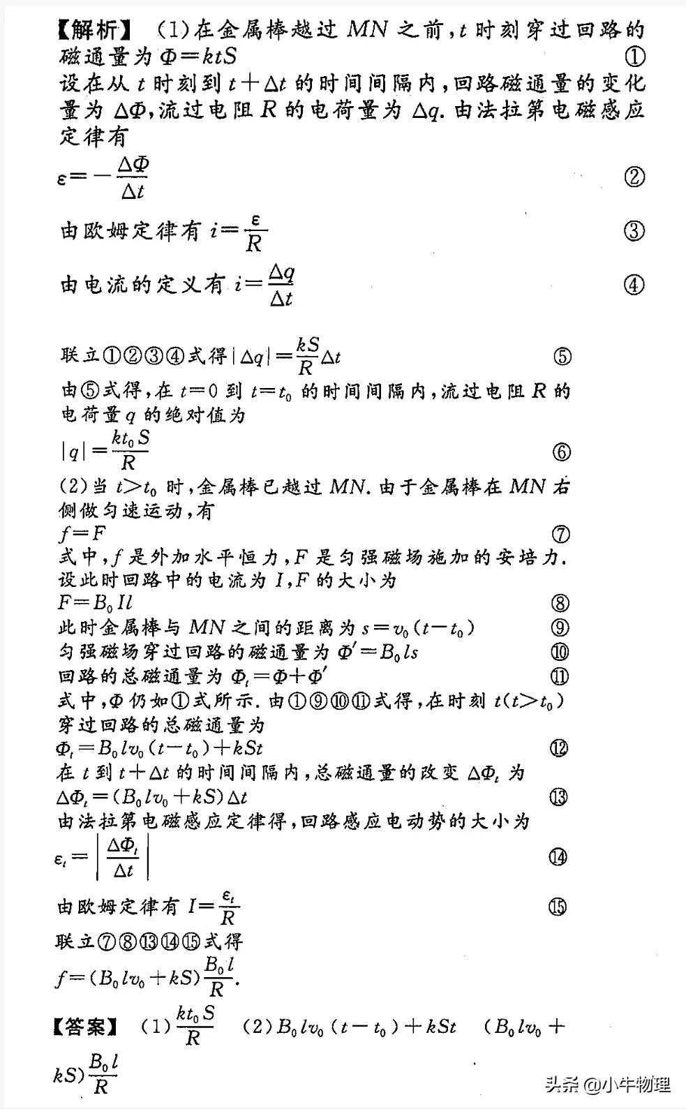 解法二(竞赛拓展):本题涉及的感生和动生同时存在的现象,处理如下: