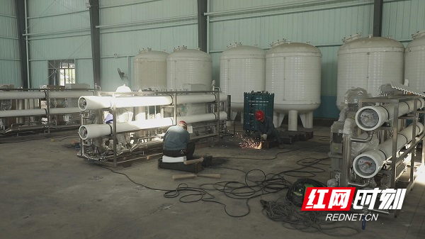 在湖南朗德金沅生物科技有限公司,生产车间已经完成了基础施工,工人们正使用吊装设备将设备吊装到指定位置,再进行零部件组装。车间中控区、仓库、污水处理系统也在紧锣密鼓地建设中。