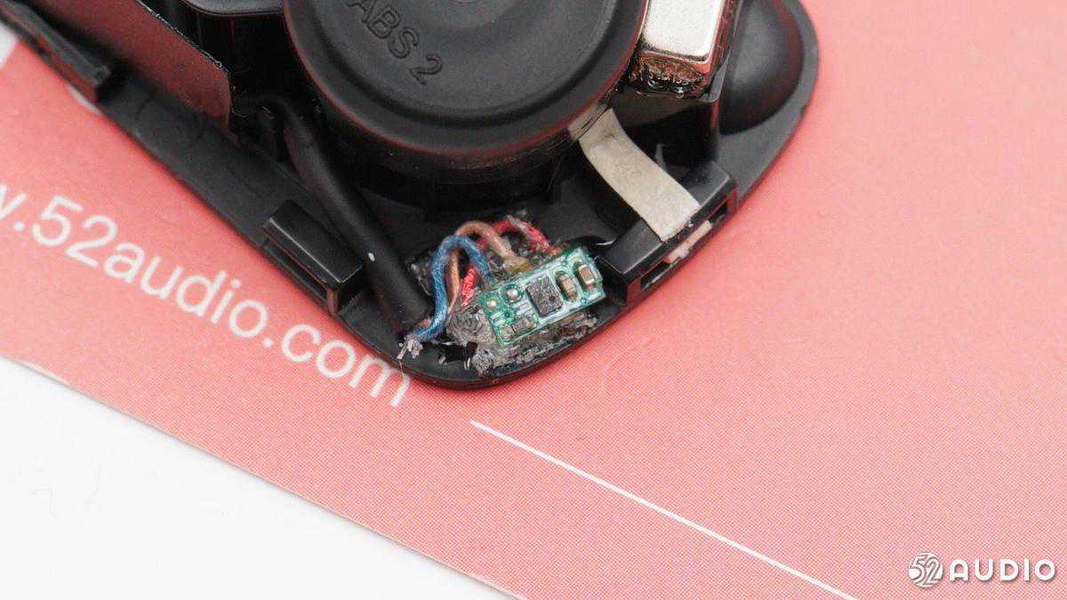 卸下固定PCBA的螺丝,充电座舱壳体内侧展示。盒盖开启处有一个梯形磁铁用于吸附盒盖,两侧耳机位置有磁铁吸附固定耳机。